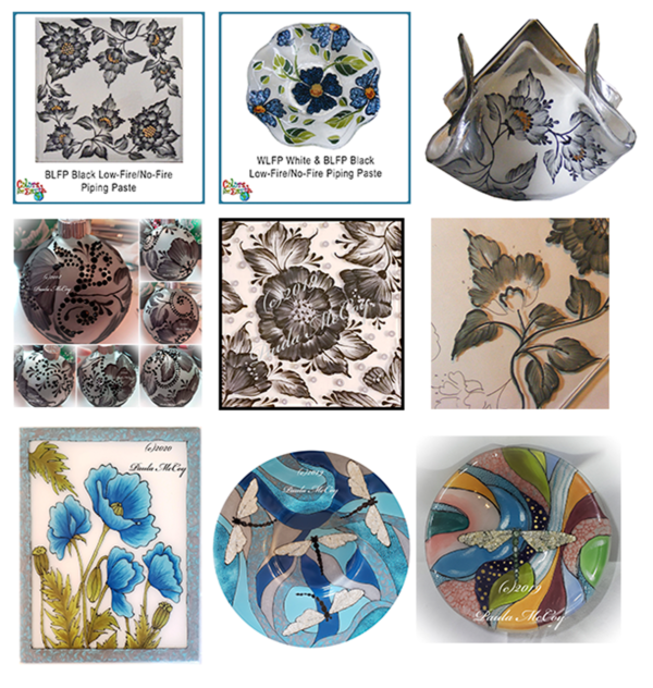 - Can be used as an outline. It is raised off the surface of the glass and creates a dam so that you can apply your color inside the areas and not go over your outline.