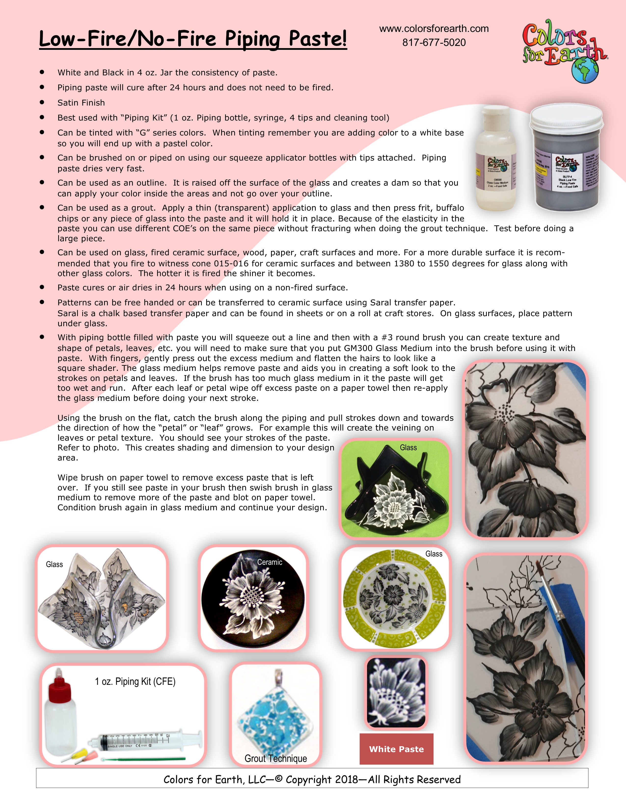 This project shows you have to create flowers and leaves with Low-Fire/No-Fire Piping Paste on glass, ceramic and ornaments. Learn how to pipe add a touch of color for an elegant touch.