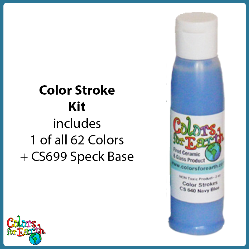 62 Vibrant Colors called “Color Strokes” and 1 Specked Base, by Colors for Earth, produce the beautiful full coverage of an underglaze and can be directly applied to bisque. While applying three coats will produce solid coverage, you can also apply a single coat to achieve brushstrokes or use in a pattern. Unlike other bisque underglazes, the CS line can also be applied to greenware (as long as you do not cover the entire piece) and produces beautiful smooth results.