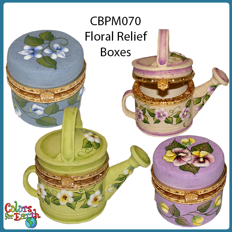 This technique includes shading, color layering, brushstrokes, and the use of Relief Motif for design build-up.  Relief Motif was discontinued.  You can mix CSP03 Matt Medium with a Color Concentrate and Textured Sand to make a stand-up product.
