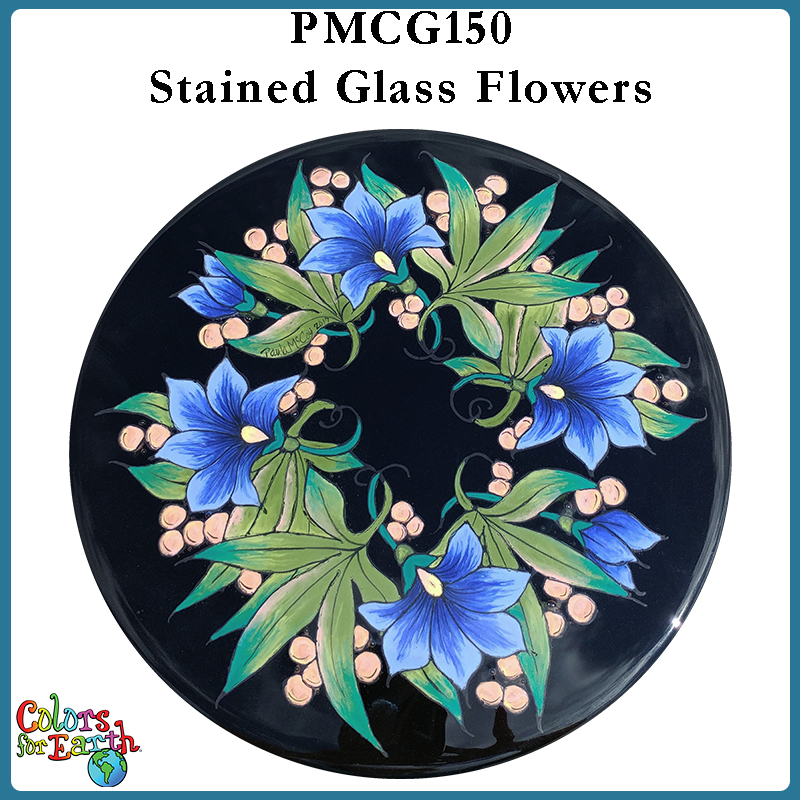 This design was created on clear and opaque black 96 coe glass. The color decoration is done with Colors For Earth Enamels and Color Concentrates.