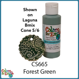 There are 62 Vibrant Colors called “Color Strokes”, by Colors for Earth, which produce the beautiful full coverage of an underglaze and can be directly applied to bisque.  While applying three coats will produce solid coverage, you can also apply a single coat to achieve brushstrokes or use in a pattern.  Unlike other bisque underglazes, the CS line can also be applied to greenware (as long as you do not cover the entire piece) and produces beautiful smooth results.